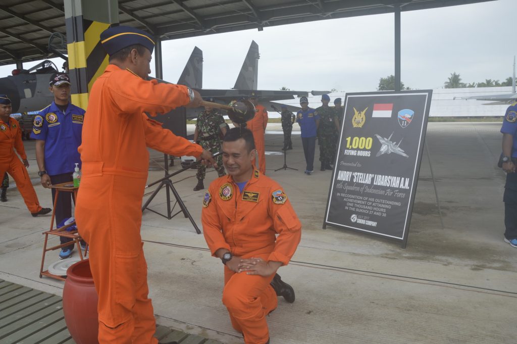 ANGKASAREVIEW.COM – Mayor Pnb Andry “Stellar” Libarsyah Agung Nugroho dari Skadron Udara 11 Lanud Sultan Hasanuddin, Makassar berhasil mencapai 1.000 jam terbang di jet tempur Sukhoi Su-27/30.