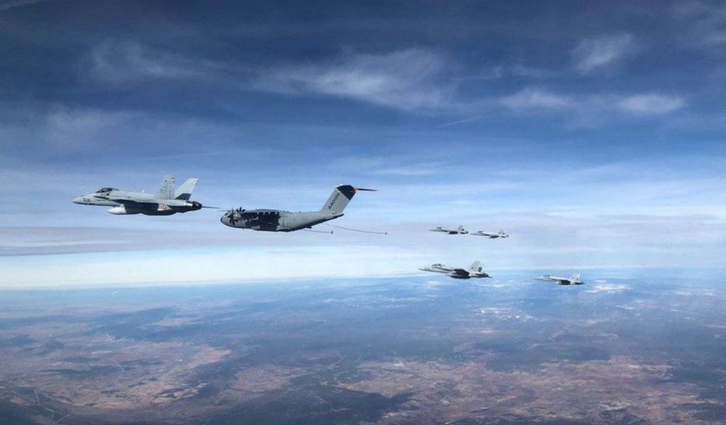 ANGKASAREVIEW.COM – Satu pesawat tanker A400M buatan Airbus Military berhasil melaksanakan pengisian bahan bakar di udara (air refueling) terhadap enam F/A-18 Hornet Angkatan Udara Spanyol.