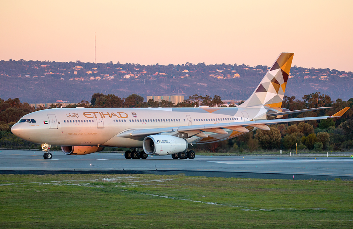 Etihad membuka penerbangan Abu Dhabi-Perth sejak Juli 2014 menggunakan pesawat Airbus A330-200 berkapasitas 262 penumpang. Mulai Juni 2016, maskapai ini mengganti pesawat yang digunakan dengan Boeing 787-9 berkapasitas 299 penumpang.