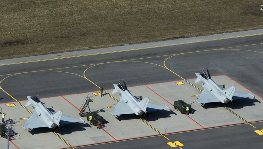 Keberadaan Typhoon di Lithuania didukung oleh Detasemen RAF yang bergtugas di sana. Typhoon akan menjalankan tugas Patroli Udara (Air Policing) NATO di kawasan Baltik.
