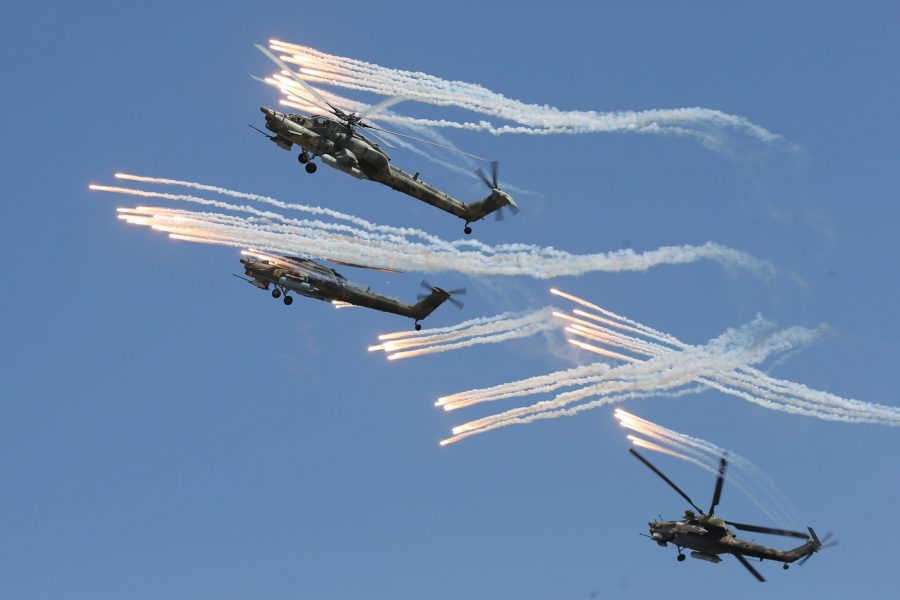 Tampilan The Berkuts terlihat sangar dengan helikopter serang Mi-28N. Versi ekspor dari helikopter modern ini diberi kode Mi-28NE. Di MAKS-2021 heli ini juga dipamerkan berikut beragam persenjataannya.