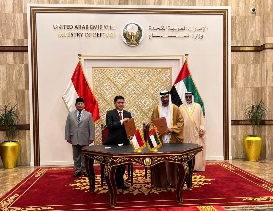 Kegiatan yang berlangsung di Kantor Kementerian Pertahanan UAE, Abu Dhabi ini turut disaksikan secara langsung oleh Menteri Pertahanan RI Prabowo Subianto dan Menteri Pertahanan UAE Mohammed Ahmed Al Bowardi.