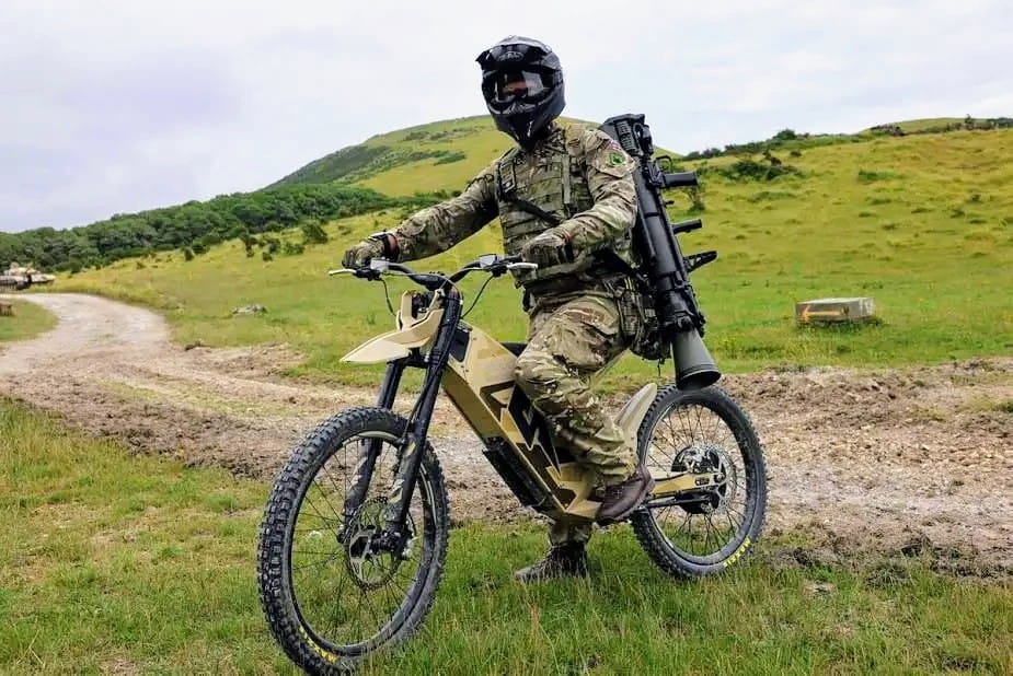 Mereka dilengkapi dengan Eleek Atom ‘Military Stealth Bike’ buatan Ukraina dengan membawa rudal antitank NLAW untuk memburu tank Rusia.