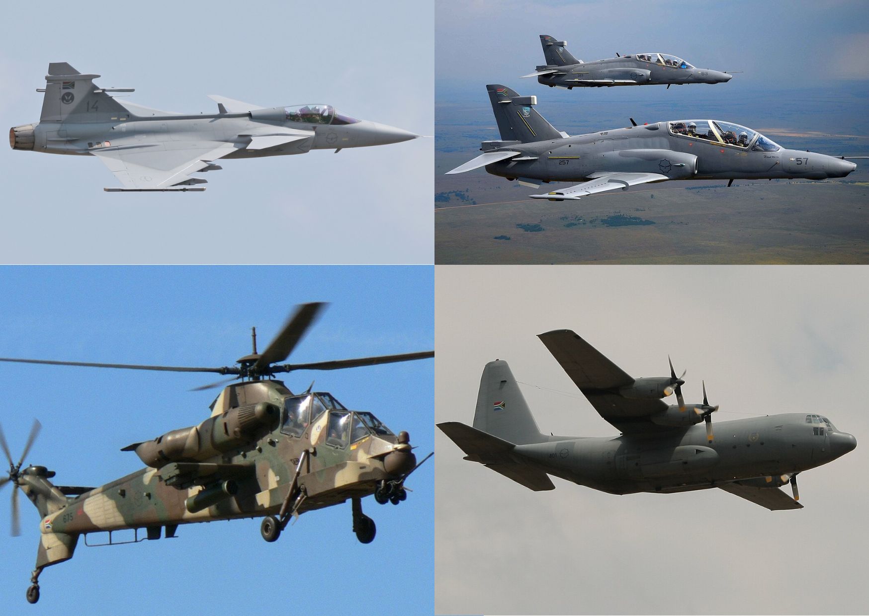 Terkait pesawat tempur, dari 26 unit jet tempur Saab Gripen SAAF, hanya dua unit yang dapat beroperasi. Sementara dari 24 pesawat Hawk, hanya tiga unit yang bisa terbang.