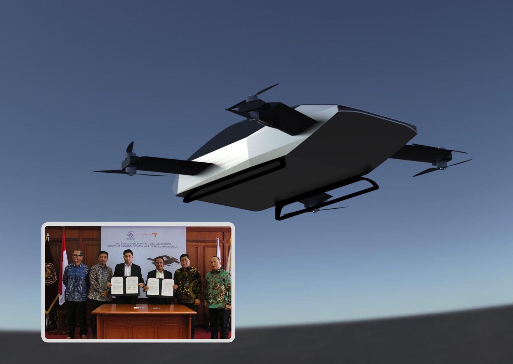 “Seiring dengan meningkatnya demand terhadap pesawat Advanced Air Mobility, seperti pesawat terbang e-VTOL, produk yang akan dikembangkan bersama PT Intercrus Aero Indonesia ini dapat membantu mengatasi masalah kemacetan lalu lintas di wilayah metropolitan, mengurangi waktu transit dan meningkatkan efisiensi ekonomi”, jelas Gita Amperiawan.