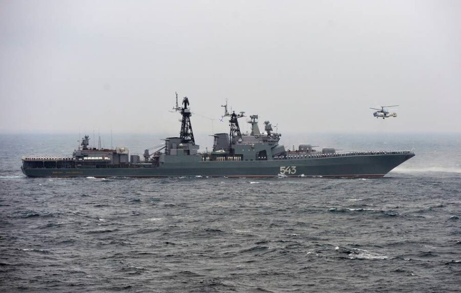 AIRSPACE REVIEW – Fregat Proyek 1155 Armada Pasifik Rusia, Marshal Shaposhnikov, melakukan penembakan rudal jelajah presisi Kalibr dan Uran dalam latihan militer di Laut Jepang.