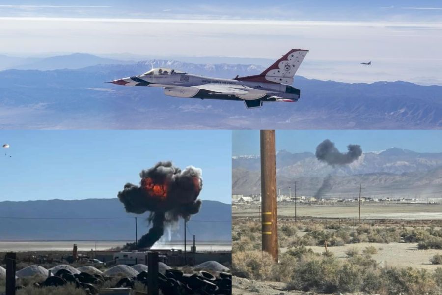 Pesawat jatuh pada pukul 10.45 pagi waktu setempat saat melaksanakan latihan penerbangan dari Pangkalan Angkatan Udara Nellis di Nevada.