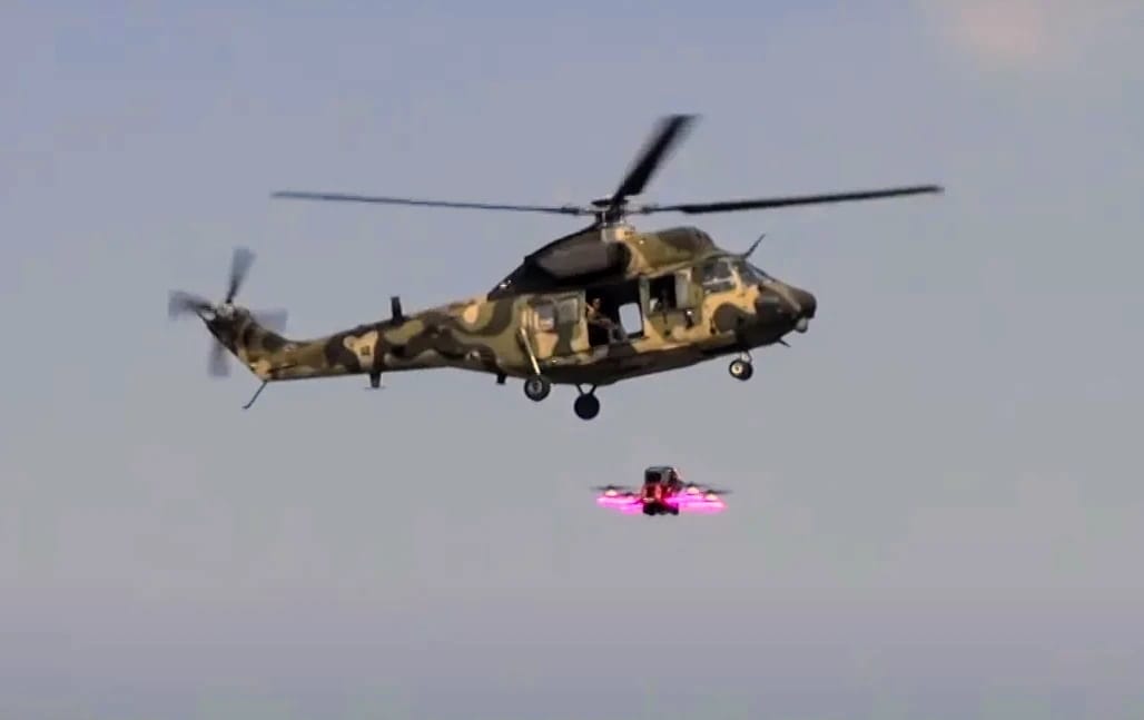 AIRSPACE REVIEW - Angkatan Darat Korea Selatan (RoKA) melakukan demonstrasi langsung peluncuran drone kamikaze FPV (First-Person View) dari helikopter KUH-1…